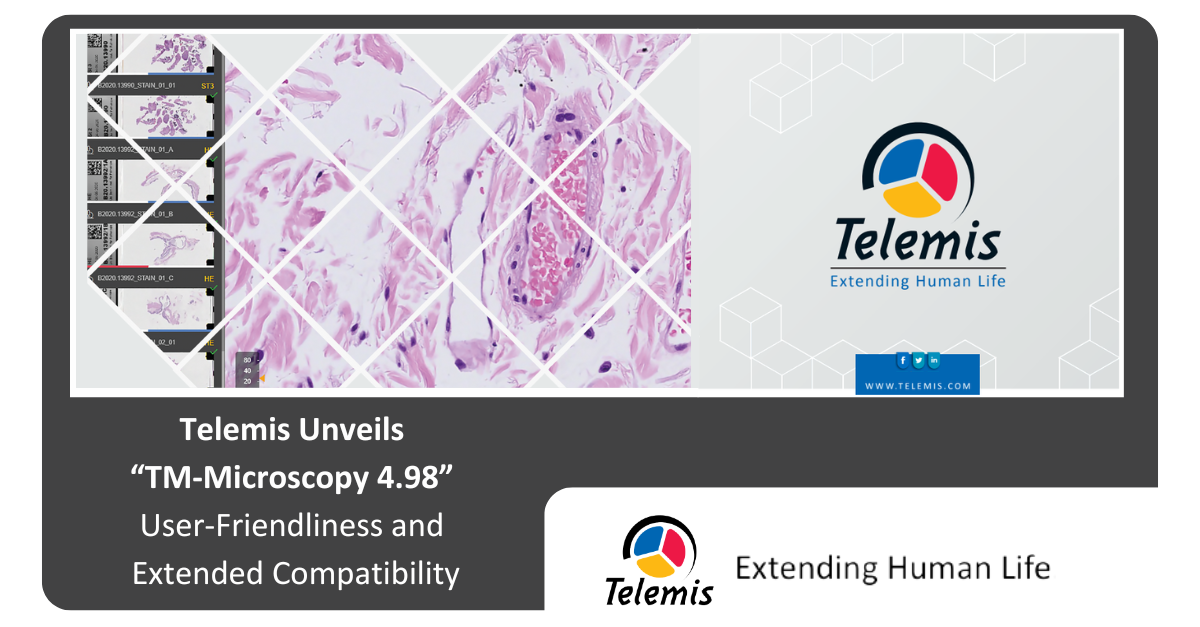 Louvain-la-Neuve, 27 May 2025. Telemis, the specialist in medical imaging solutions, is proud to announce TM-Microscopy 4.98. With this new version, TM-Microscopy takes a significant step forward and positions itself as an essential tool for digital pathology. Integration of the DICOM-WSI format, ultra-smooth navigation, extended annotations to macro images, and precise calibration of measurements: each development addresses a specific professional need. The goal is clear: to increase performance on-site and remotely.