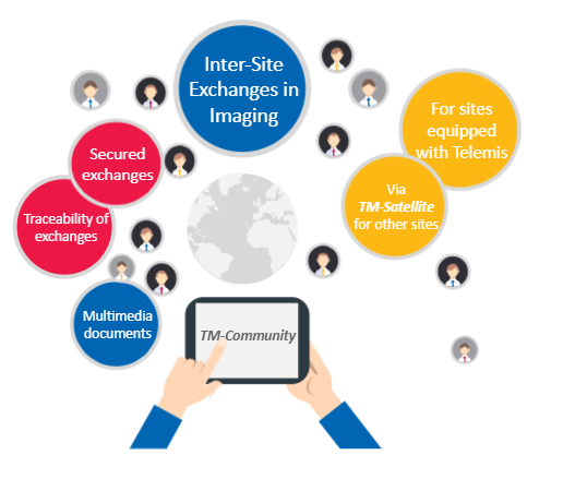 TM-Community est une solution basée dans le cloud qui permet aux établissements hospitaliers d’échanger des dossiers médicaux entre eux. Ces échanges concernent tous les types de documents (PDF, DICOM, JPEG, etc.). Ils sont entièrement sécurisés et tracés.